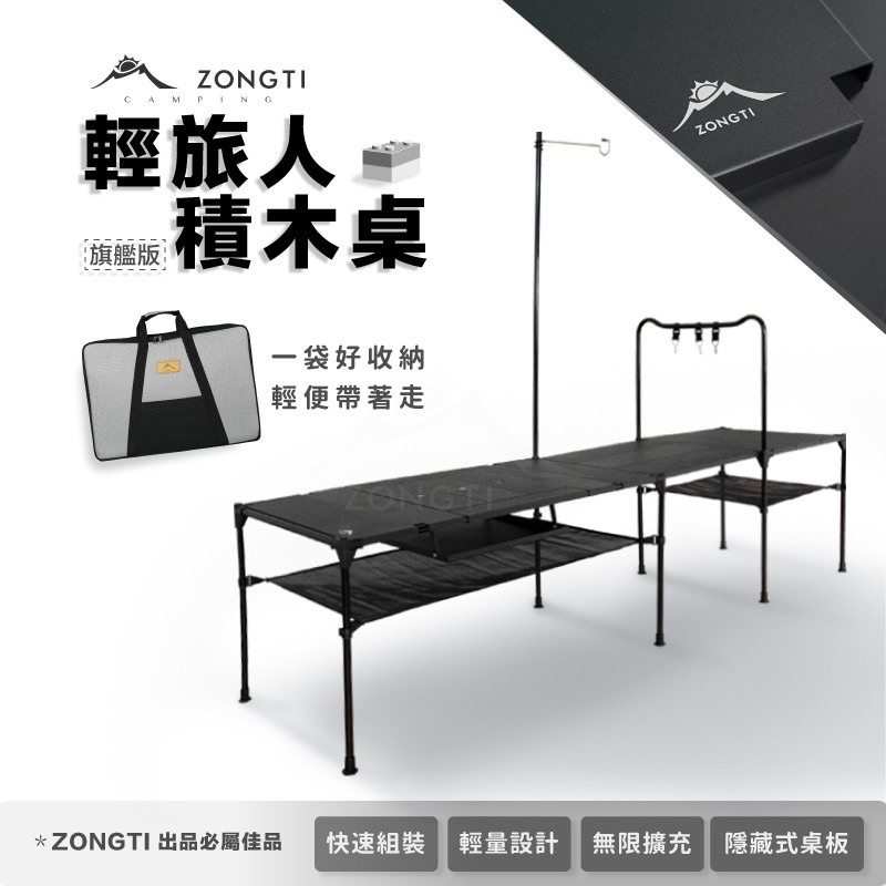 ZONGTI二代輕旅人積木桌是一款多變設計的輕鋁桌,其獨特的組合方案可以根據個人需要,自由搭配出不同的造型和功能,例如六單位嵌入式爐具桌、三單位桌和連接延伸板等。